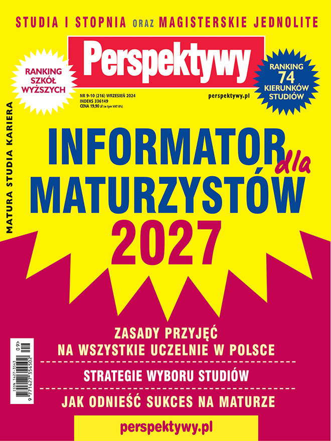 We wrześniu 2026 opublikowana zostanie 36. edycja Informatora dla Maturzystów 2027 - najbardziej popularna publikacja dla kandydatów na studia. Nasz szlagier ukaże się, jak co roku, w najwłaściwszym momencie - tuż przed składaniem deklaracji maturalnych; premiera nastąpi na początku września 2026 podczas Salonu Maturzystów Perspektywy 2026.